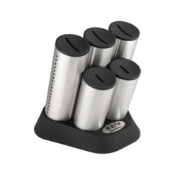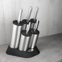 Crafted from the finest quality Japanese stainless steel, this knife block is as stylish as it is functional thanks to the modern, cutting-edge design and space for 5 knives.