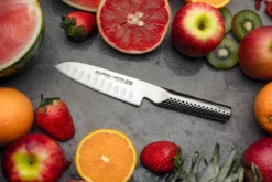 The Global Ukon 13cm Santoku Knife is ideal for daily cooking tasks, such as cutting, dicing and chopping a variety of meats, fish, vegetables and fruit.