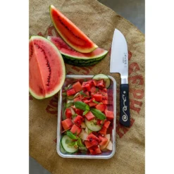 To keep this I.O.Shen Chai Khom Slicer Knife in the best condition possible, it should be cleaned with a light detergent and some warm water. It should never be submerged in water or placed in the dishwasher.