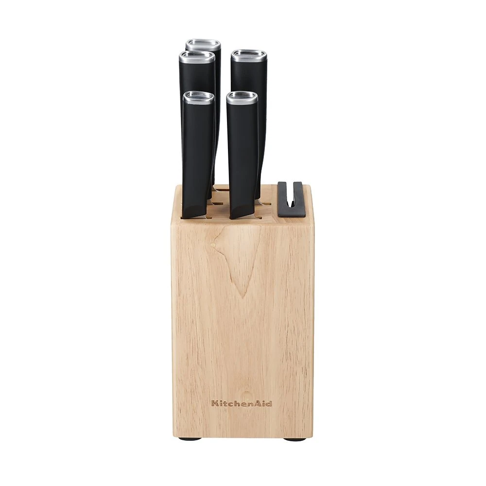 KitchenAid Classic 5-Piece Japanese Steel Knife Set with Sharpener and Birchwood Block