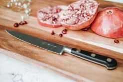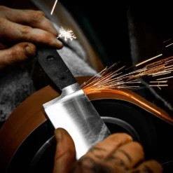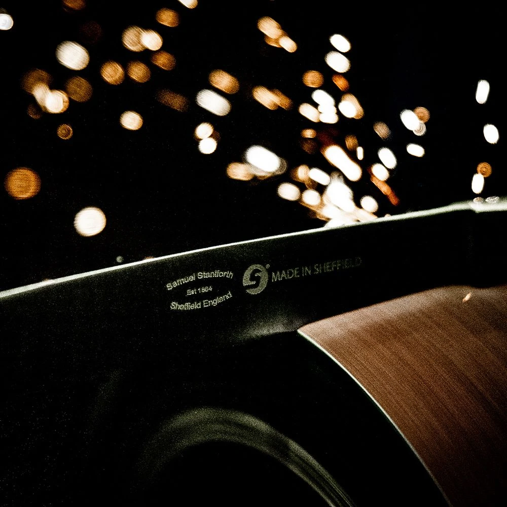 Samuel Staniforth ‘Chef’ range knives boast a traditional style of Sheffield knives. This includes the fully forged blade, forged by hand, brass rivets are secured by hand which will permanently secure the handle to the tang. The chef range, features a round bolster which counter balances the knife to ensure it can be the perfect ally in the kitchen.