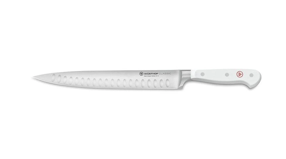 The Wusthof Classic White 23cm Carving Knife is intended for slicing and serving cooked meat, poultry and vegetables.
