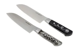 An alternative to the chef’s knife. Great for cutting, chopping and mincing vegetables. The blade has a straighter edge than a chef’s knife and has a blunted sheepsfoot-tip blade with a thinner spine. It can easily slice thin-boned and boneless meats, fish and vegetables.